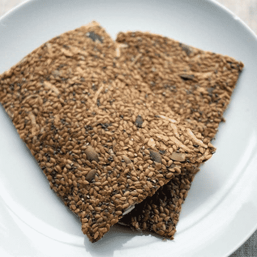 - Bages 6-8 timer ved 60 grader (varmluft). Herefter lægges et nyt stykke bagepapir over, og pladen vendes forsigtigt. Fjern det oprindelige stykke bagepapir, og skær herefter knækbrødene ud i den ønskede størrelse.