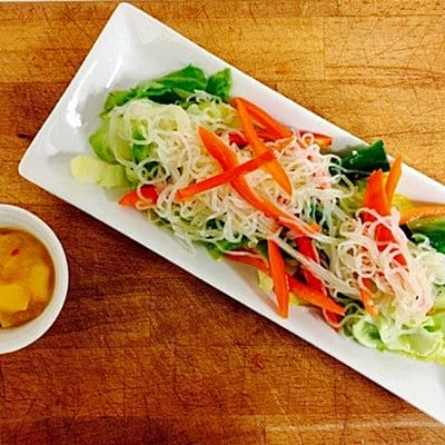 Lun spidskålsalat med stegte shirataki-nudler