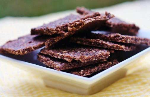 4. Spred blandingen på en bageplade med bagepapir og bag 3-4 timer ved ca. 60 grader (varmluft). Derefter skæres pladen i de ønskede størrelser, vendes og bages videre i ca. 3-4 timer.